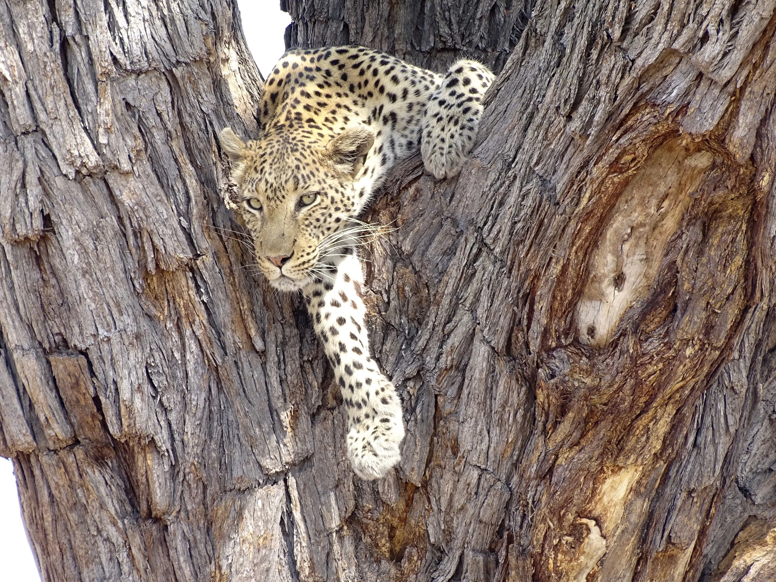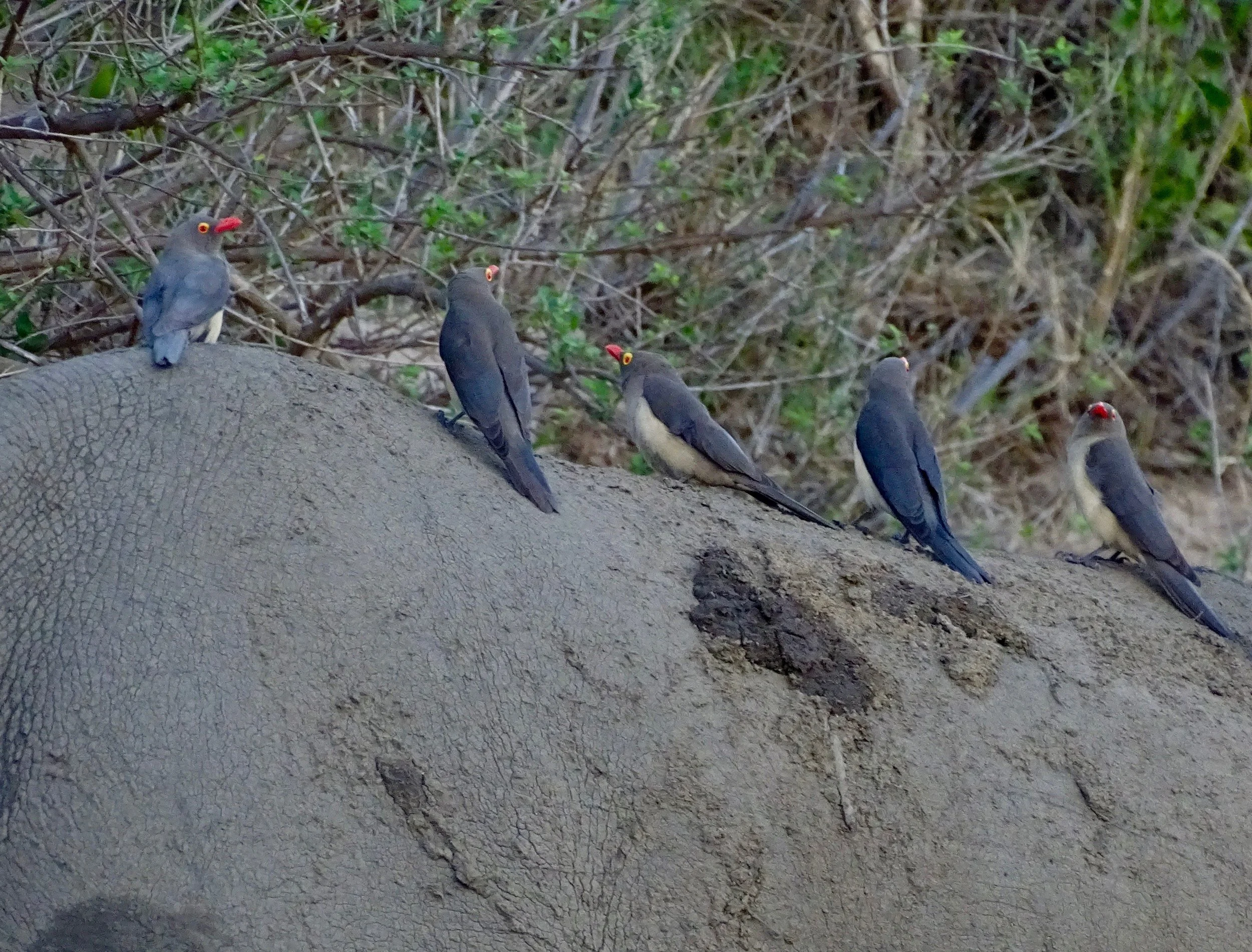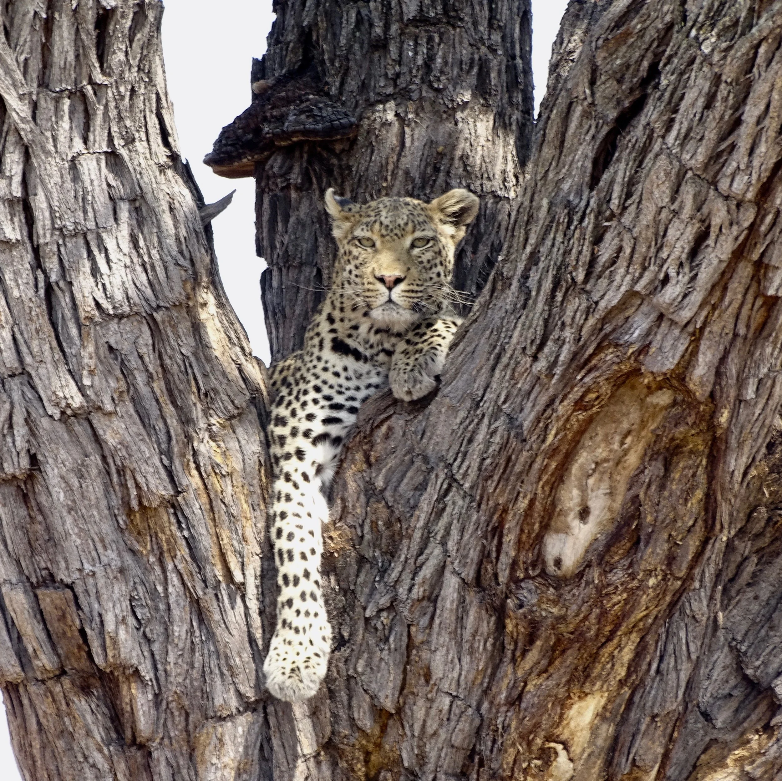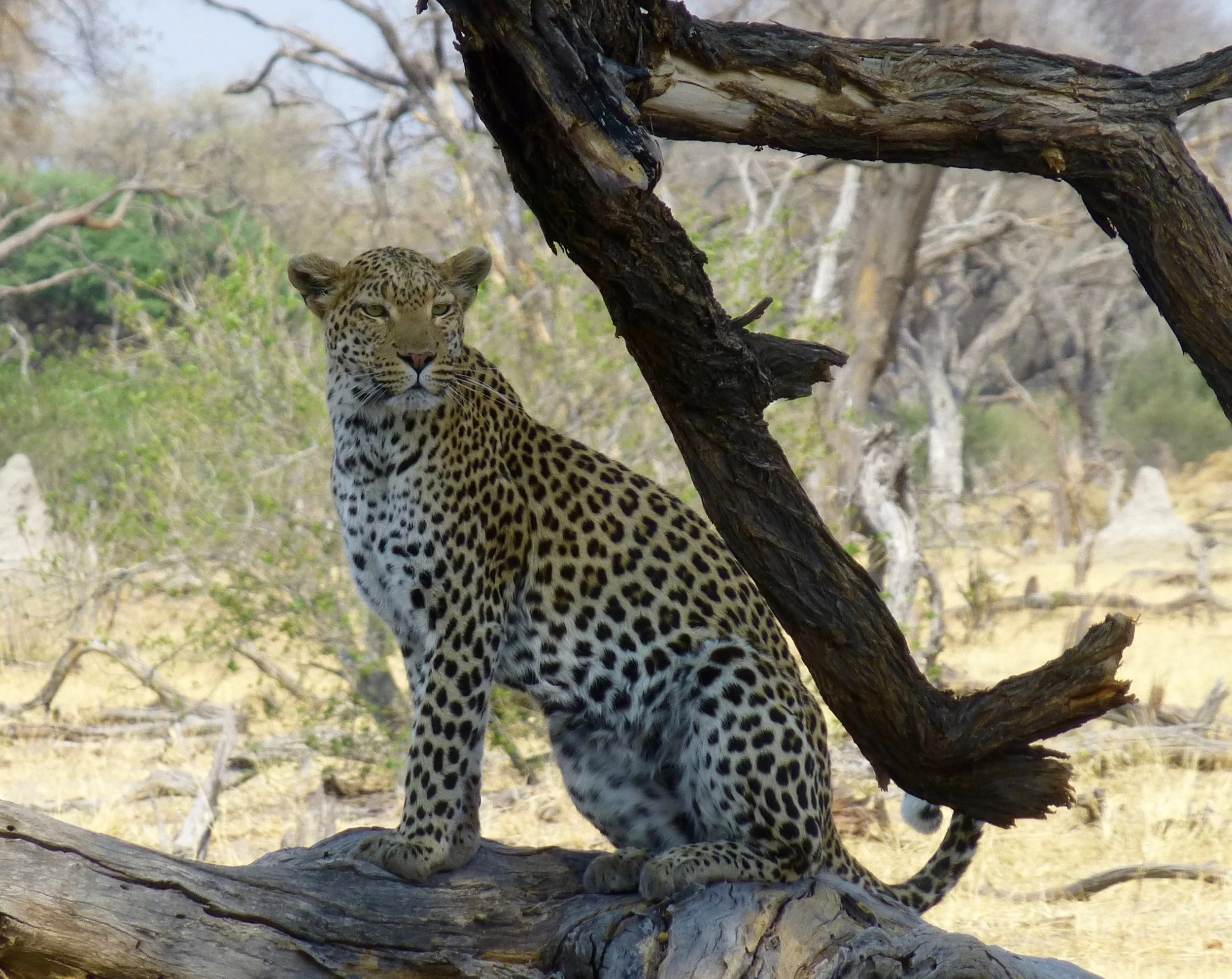 In Africa, the Big Five game animals are the Lion, Elephant, Cape Buffalo, Leopard, and Rhinoceros. The term "big five game" (usually capitalized or quoted as "Big Five") was coined by big-game hunters and refers to the five most difficult animals in Africa to hunt on foot. Subsequently the term was adopted by safari tour operators for marketing purposes. The term is used in most tourist and wildlife guides that discuss African wildlife safaris. The members of the Big Five were chosen for the difficulty in hunting them and the degree of danger involved, rather than their size. On a number of occasions, our guides said the Cape Buffalo was the the most dangerous of all the animals. The following photos are photographs I took of the Big Five. My Leopard photos are some of the best photographs I took on the whole African trip.