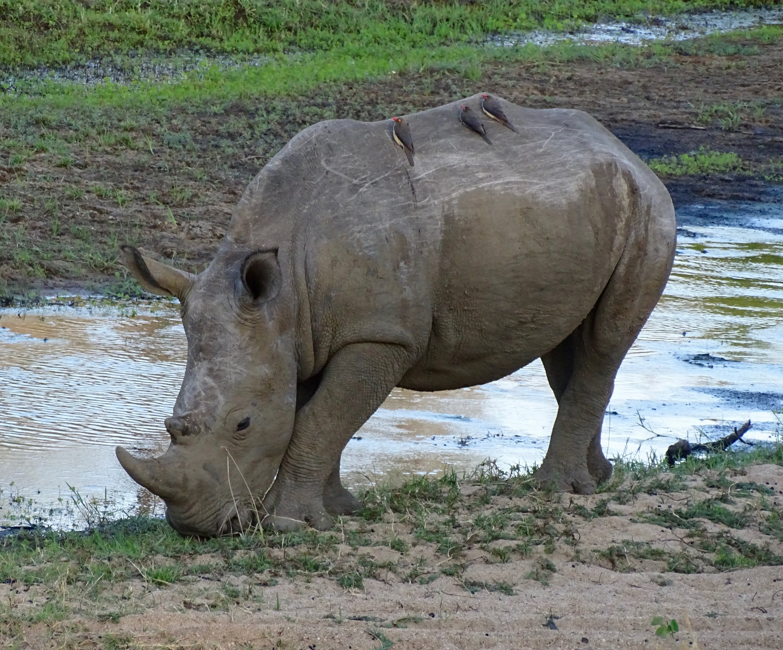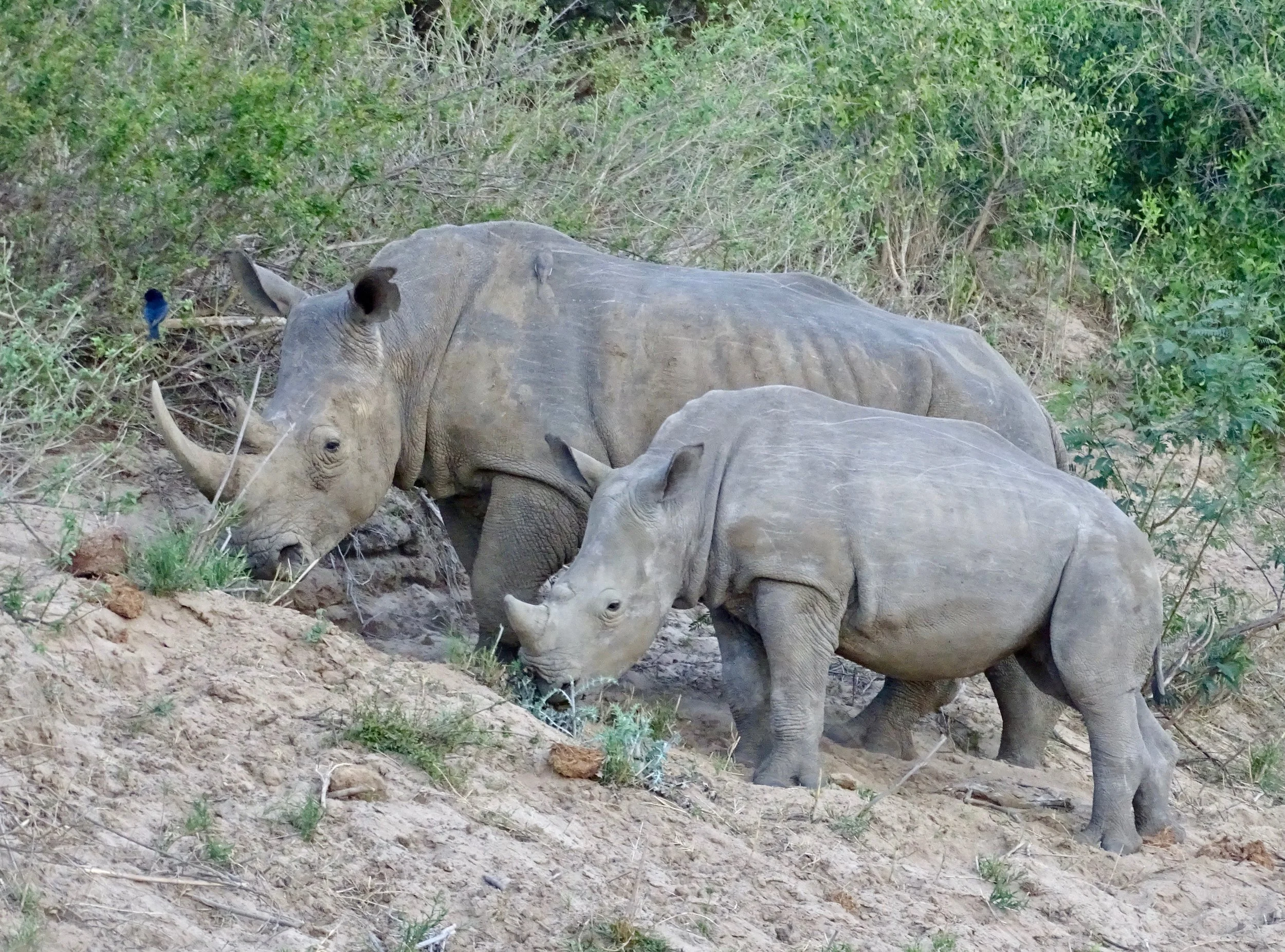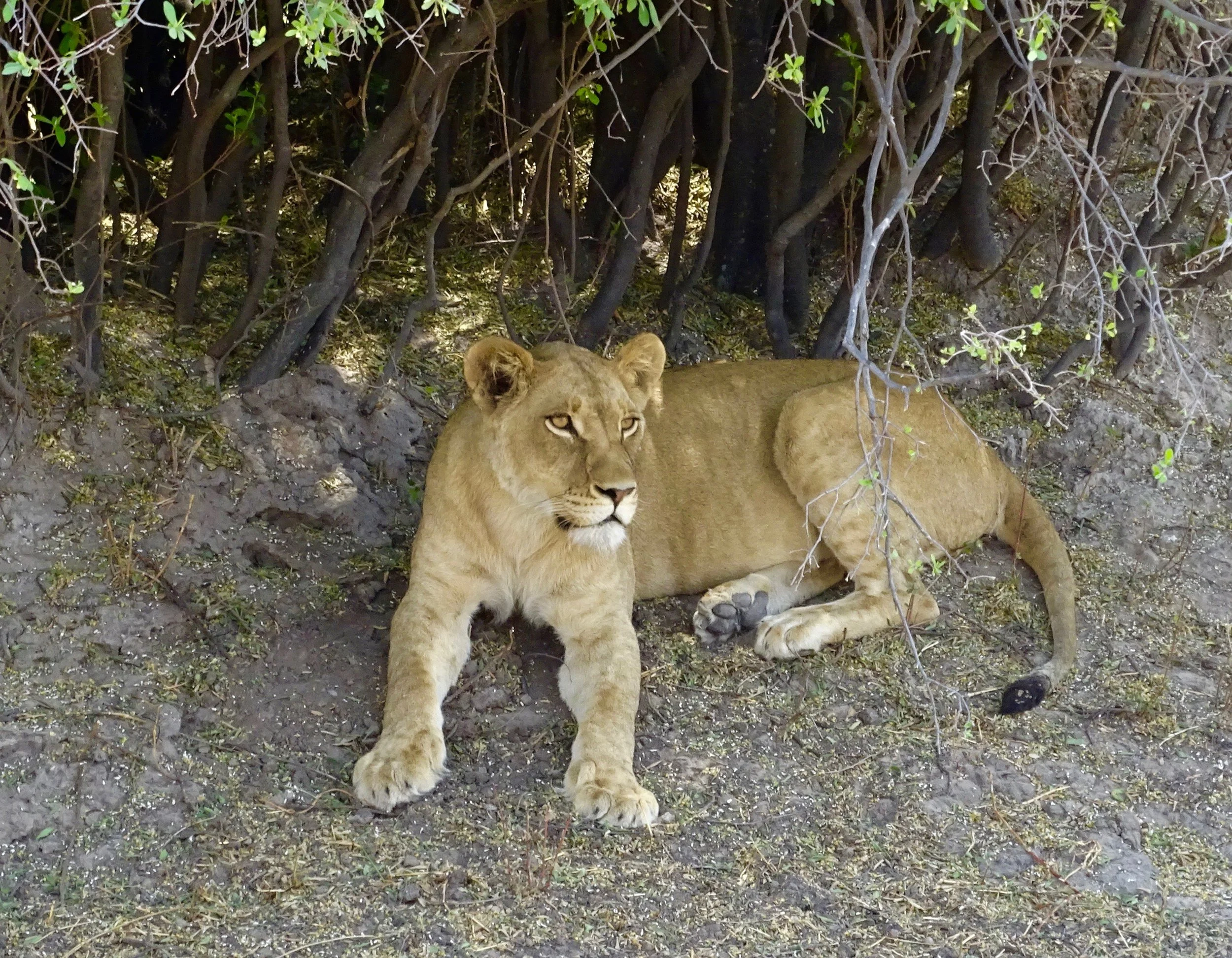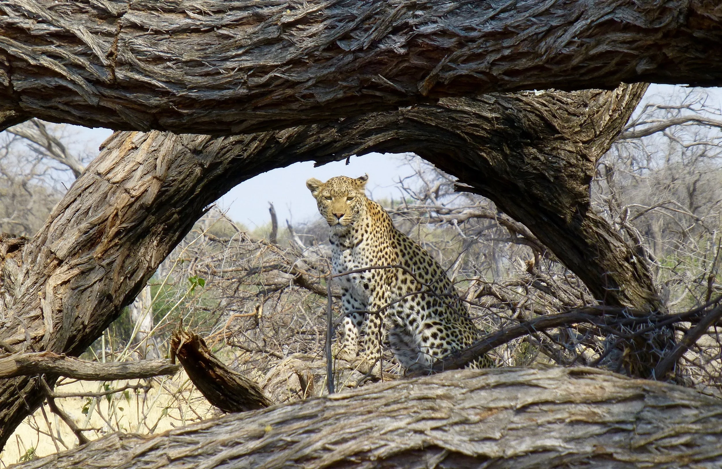 In Africa, the Big Five game animals are the Lion, Elephant, Cape Buffalo, Leopard, and Rhinoceros. The term "big five game" (usually capitalized or quoted as "Big Five") was coined by big-game hunters and refers to the five most difficult animals in Africa to hunt on foot. Subsequently the term was adopted by safari tour operators for marketing purposes. The term is used in most tourist and wildlife guides that discuss African wildlife safaris. The members of the Big Five were chosen for the difficulty in hunting them and the degree of danger involved, rather than their size. On a number of occasions, our guides said the Cape Buffalo was the the most dangerous of all the animals. The following photos are photographs I took of the Big Five. My Leopard photos are some of the best photographs I took on the whole African trip.