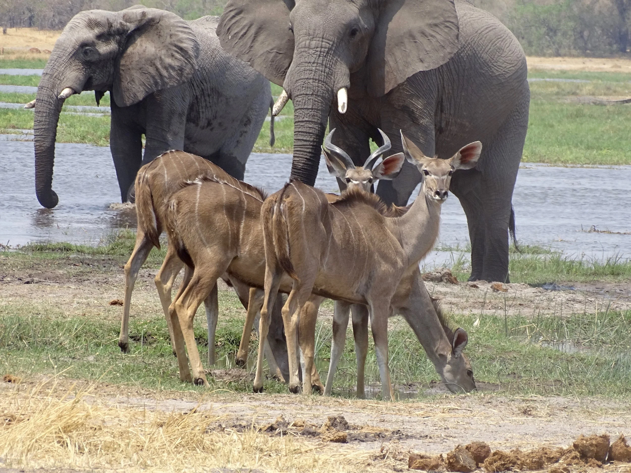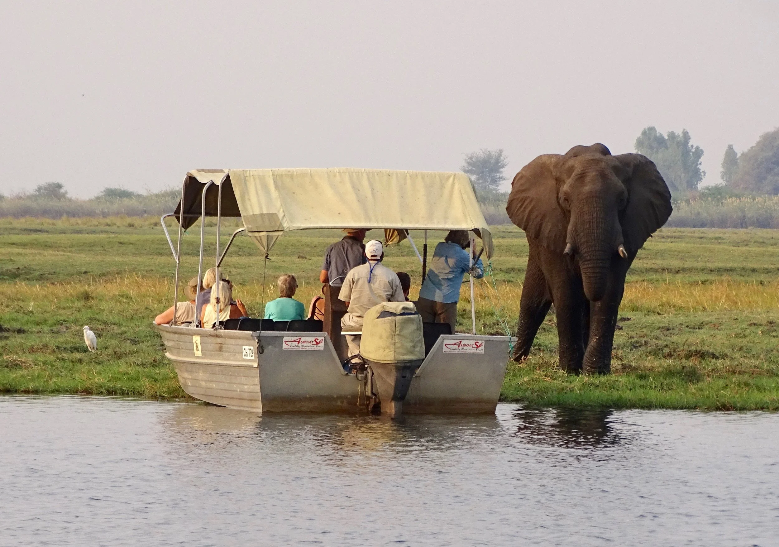 The Chobe River Delta teems with aquatic wildlife and the thousands of land animals that come to the lush green delta to feed and drink water. The area is best experienced by small boats and bigger ones with pontoons. Resorts and private companies have them ready to take you into the delta for very close encounters with aquatic and land animals. Boats tend to leave early morning and late afternoon.