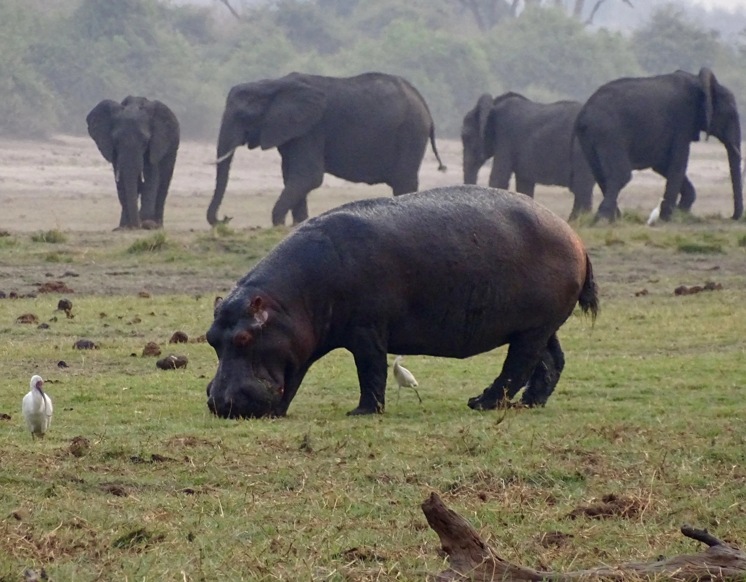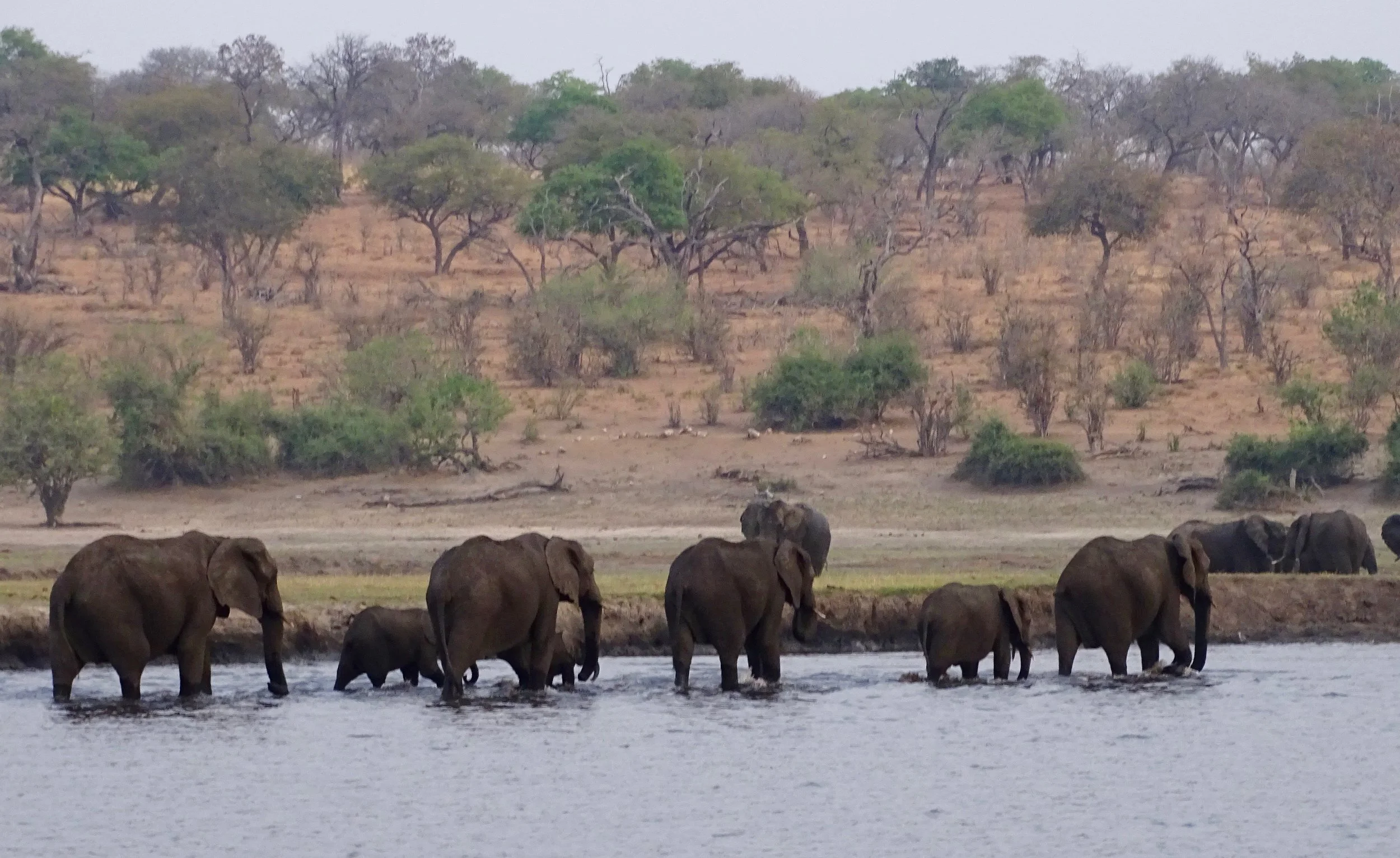 At the end of the day the land animals head back into the dry savanna scrub brush to forage for whatever they can - until they return to the lush delta the next day.
