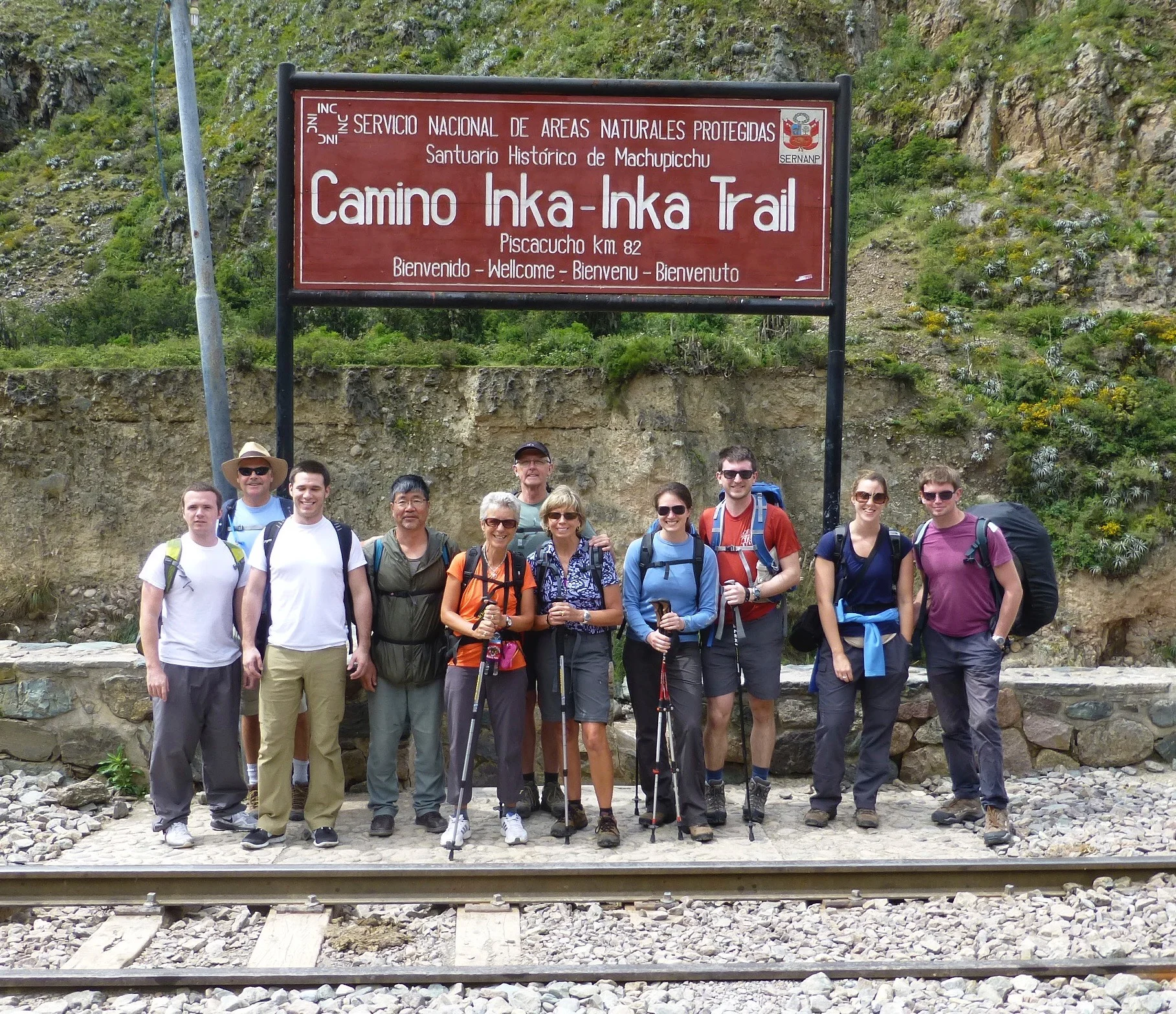 Starting at KM 82, the trek to Machu Picchu takes four days. Each day brings its own challenges and vivid memories. The hike is grueling - no doubt about that. Anyone over the age of 60 is required to submit a letter from their doctor stating they are physically capable of strenuous activity at high altitude. For safety reasons, the guides carry spare oxygen to assist anyone who experiences breathing problems. Our group of 11 people (everyone from North America except for one retired teacher from Japan) gathered for our group picture at the start - mostly thinking this would be a walk in the park….