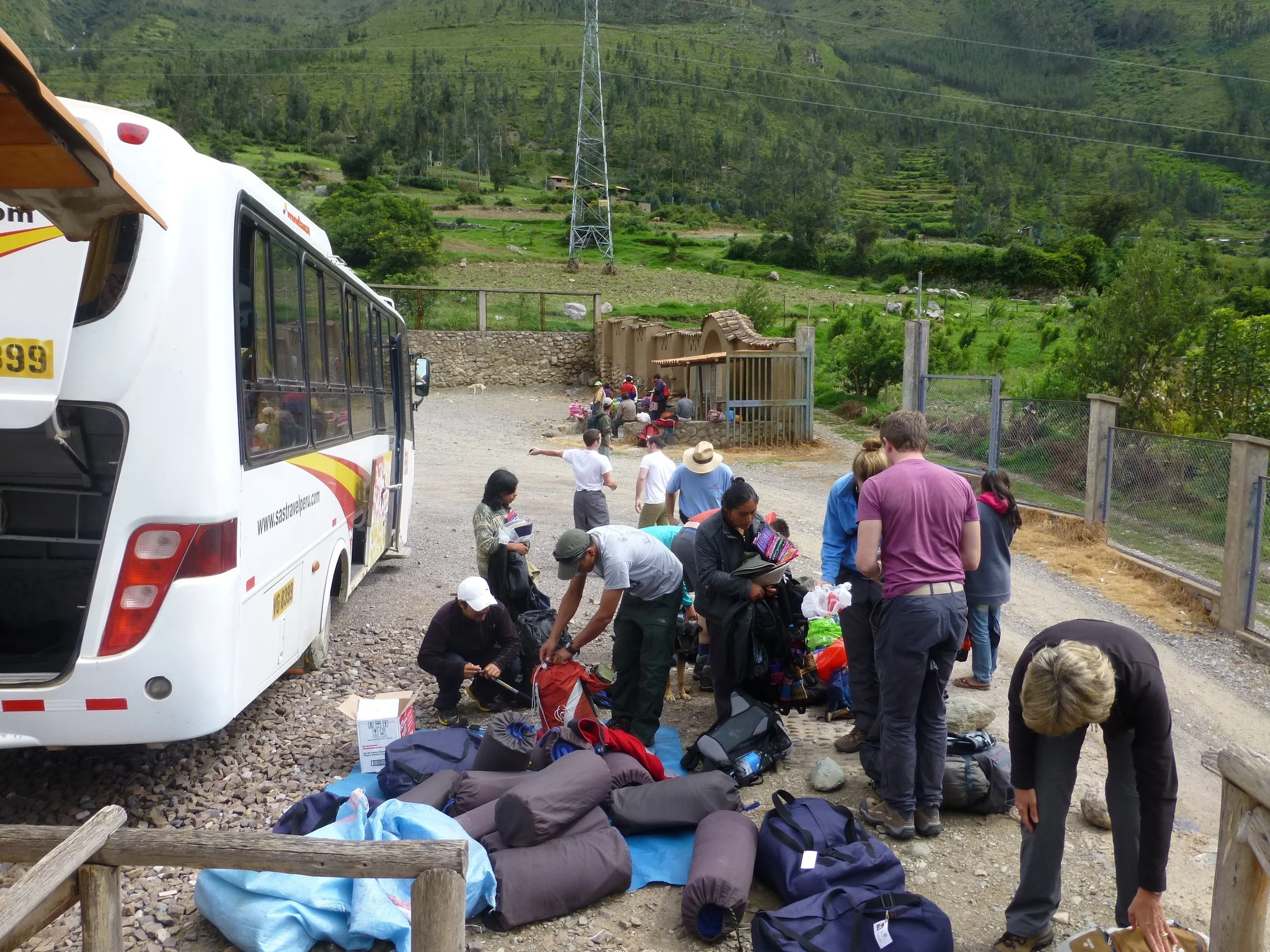 The porters had pitched our tents and set up the food tent well before we got there. We camped by the edge of a small village - with a spectacular view of the Andes Mountains. Everyone was in good spirits and seemed to handle the first days hike without too much difficulty. In the back of my mind I kept remembering our guides speech about the first day being the easiest one by far.