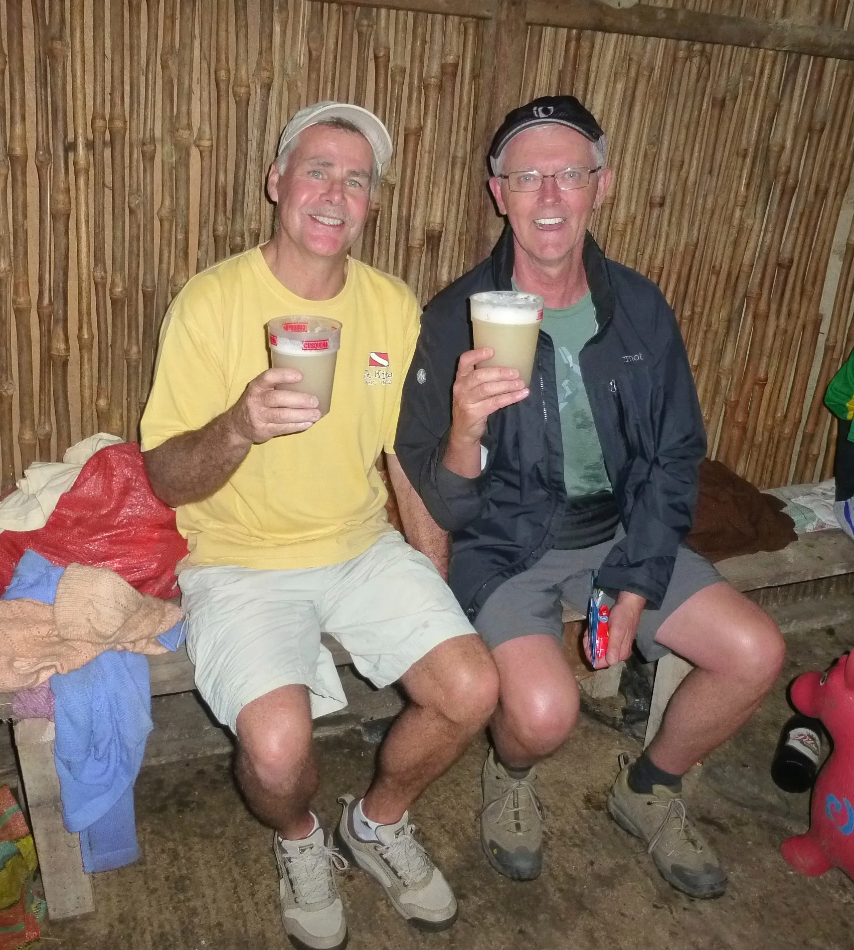 Along the way we noticed a few huts had a pole with a red cloth attached to it. When I asked Valentin what this meant, he said that the women in these huts were making Corn Beer. Porters or other villagers could stop in to enjoy a drink. In the village we stayed at for our first night - there was one of these huts and several of our porters were there enjoying a cup of Corn Beer.