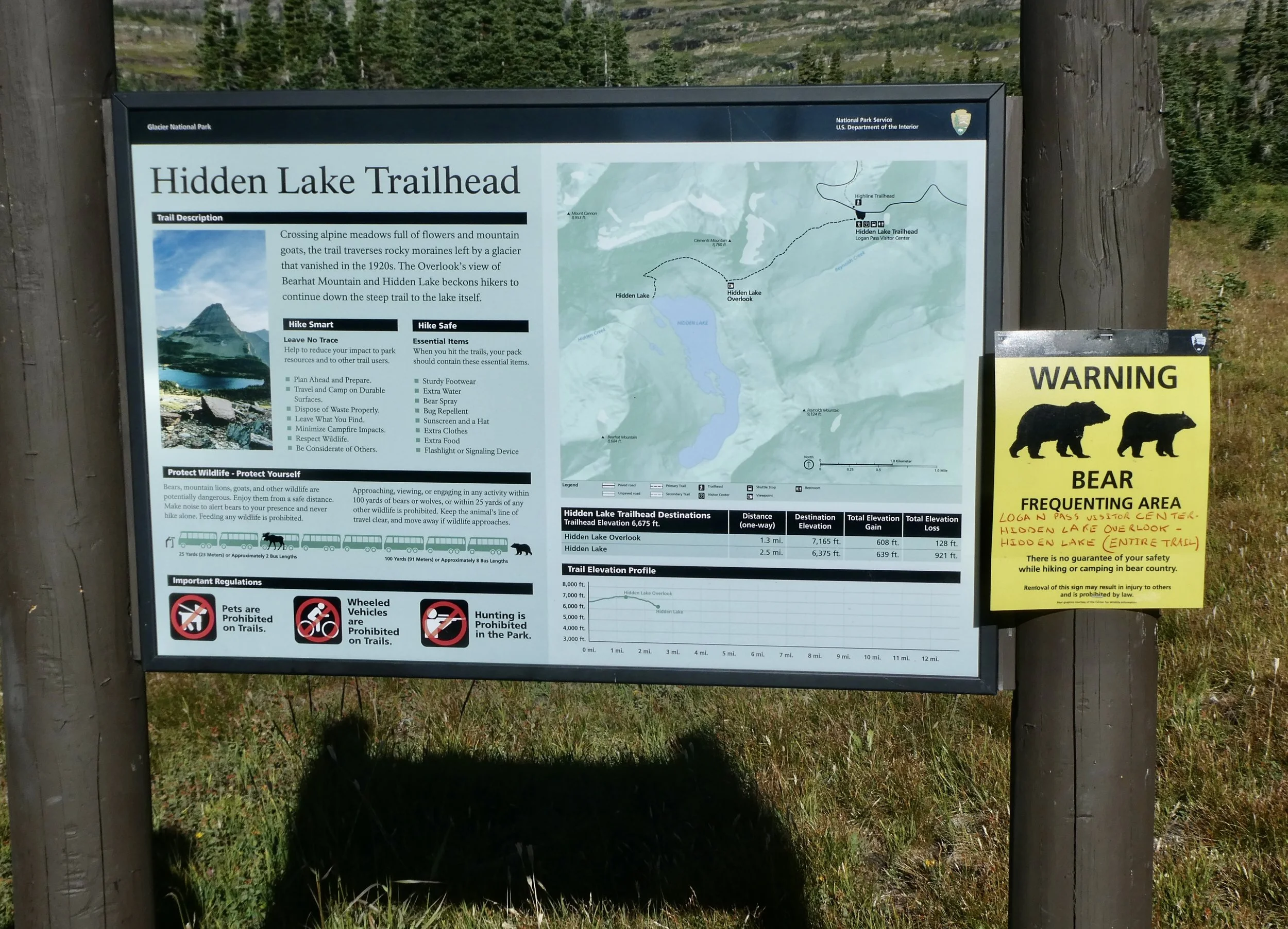 Bear encounters are a real possibility while hiking in Glacier National Park. Warning signs are posted at the start of all trails. Most hikers are carrying - BEAR SPRAY.