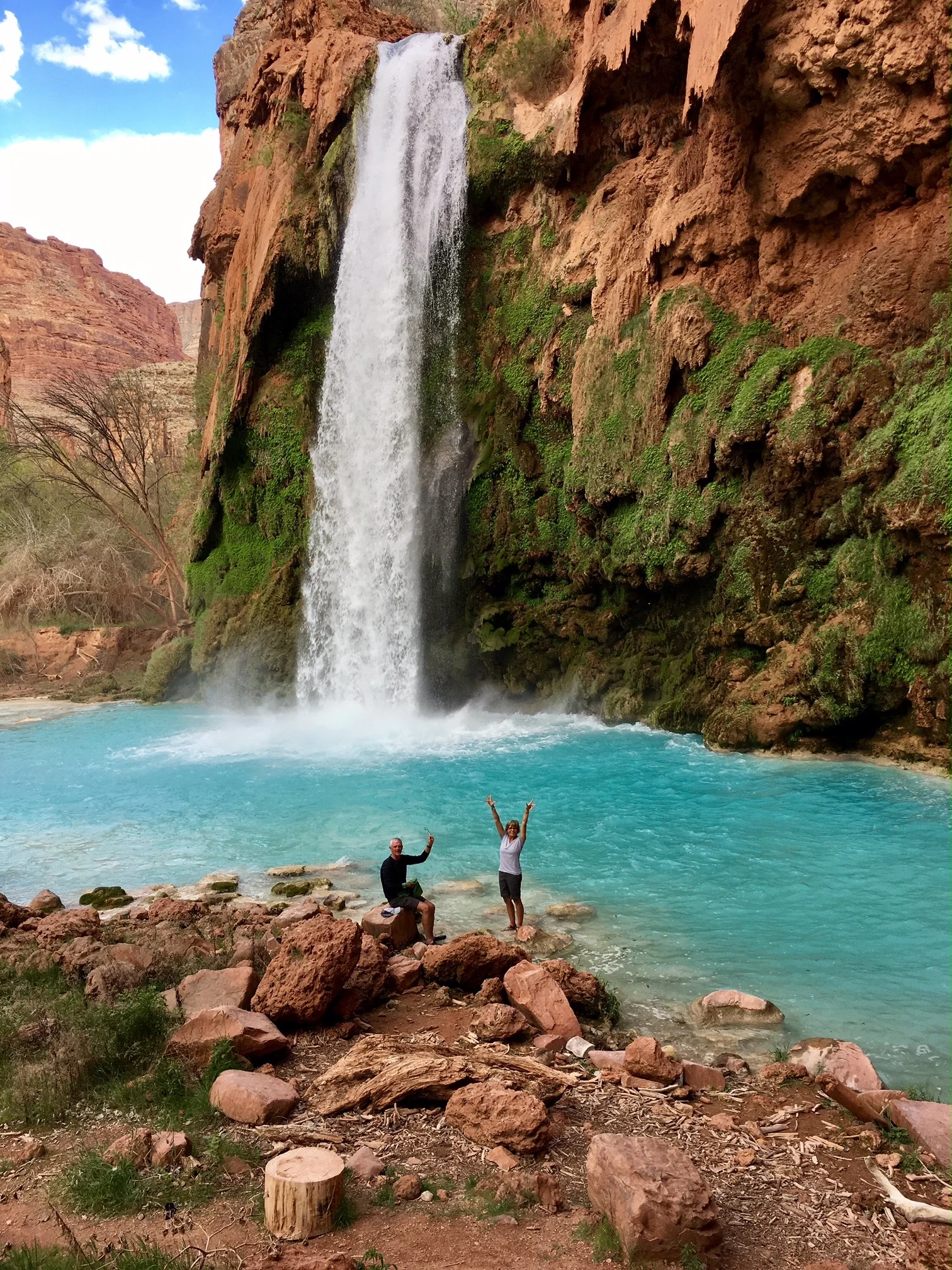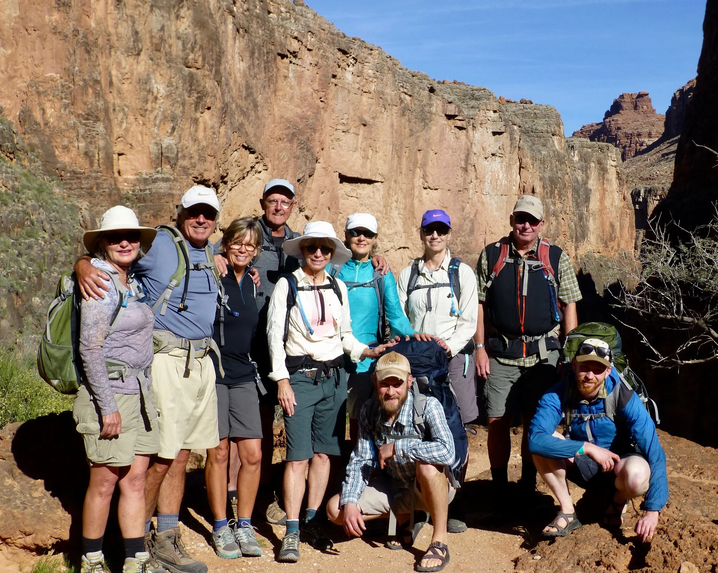 What an amazing hike the Havasu Trail proved to be. The waterfalls were beautiful and the trail challenging at times. What a great experience to share with friends. Our group and our two guides are shown below.