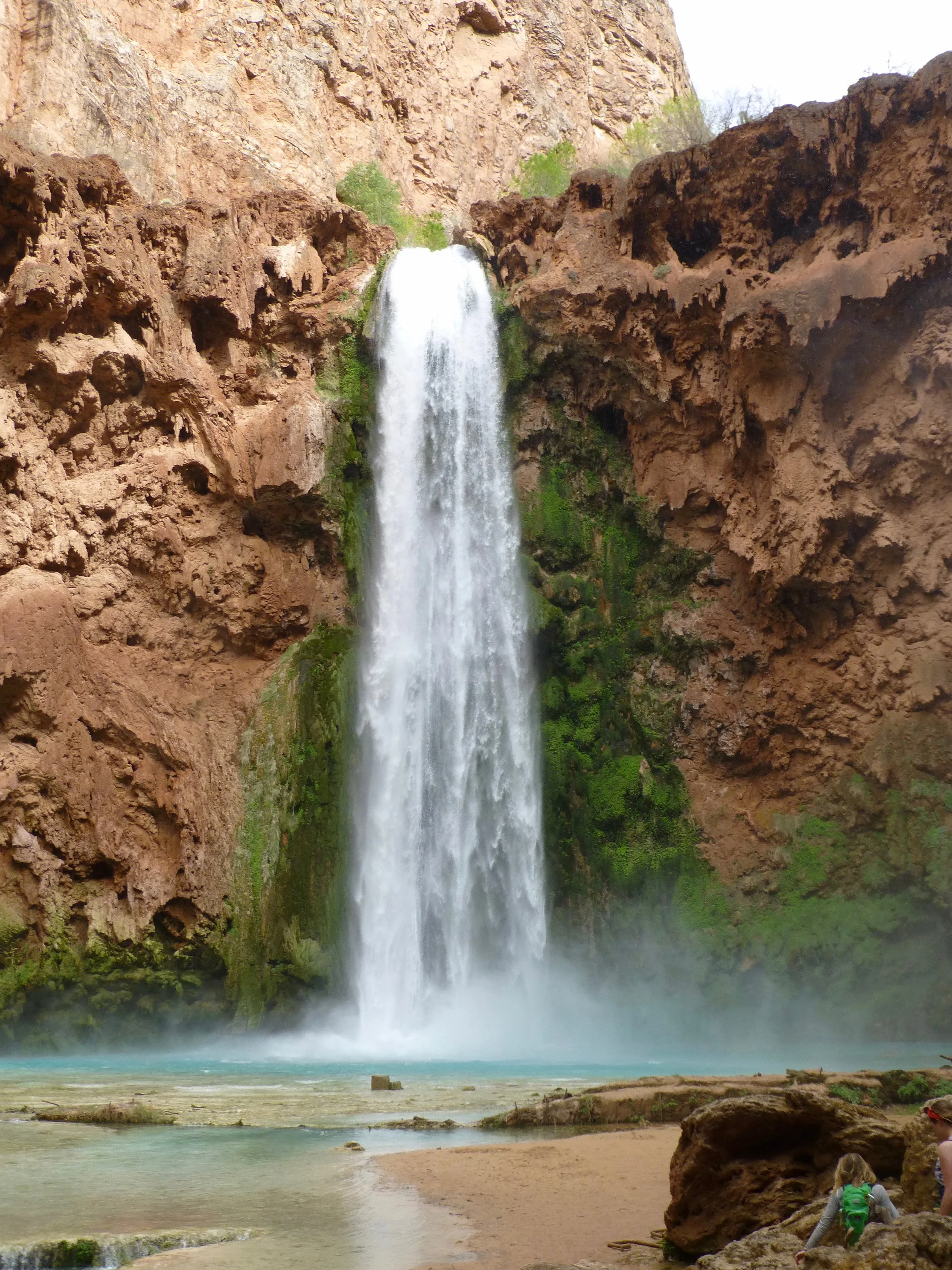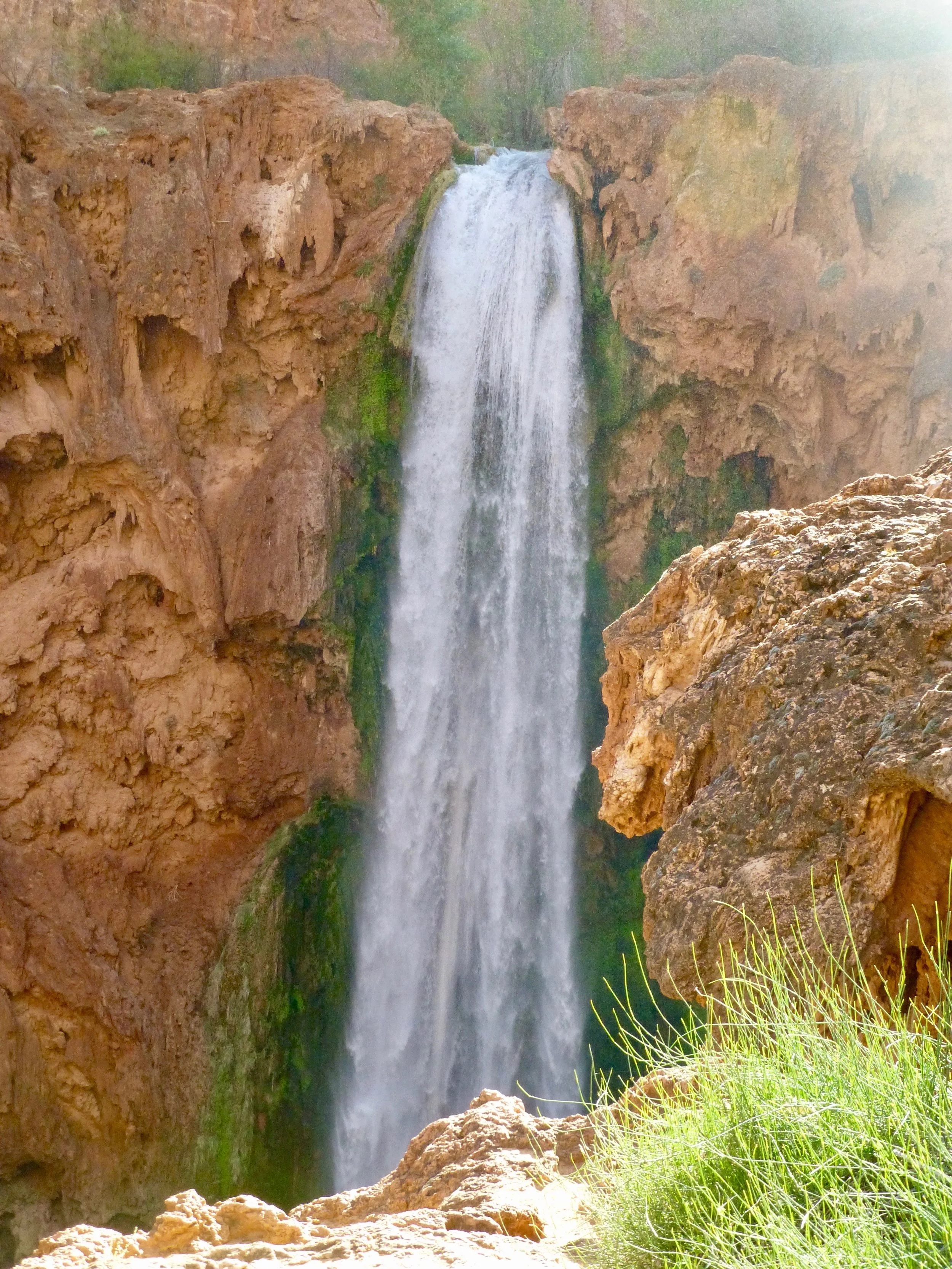 After you pass through the village of Supai, you come to the first of several spectacular water falls. Fifty Foot Falls is the first you see as you descend toward the campground.