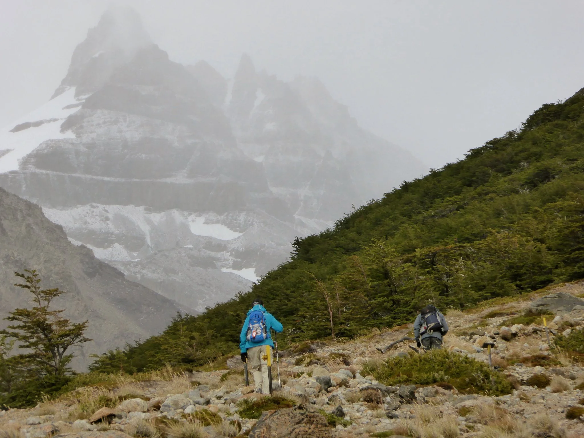 The steepness of the terrain was challenging, but the Patagonia weather soon became the real challenge. Rain turned to snow than to hail as we reached the top of the climb.