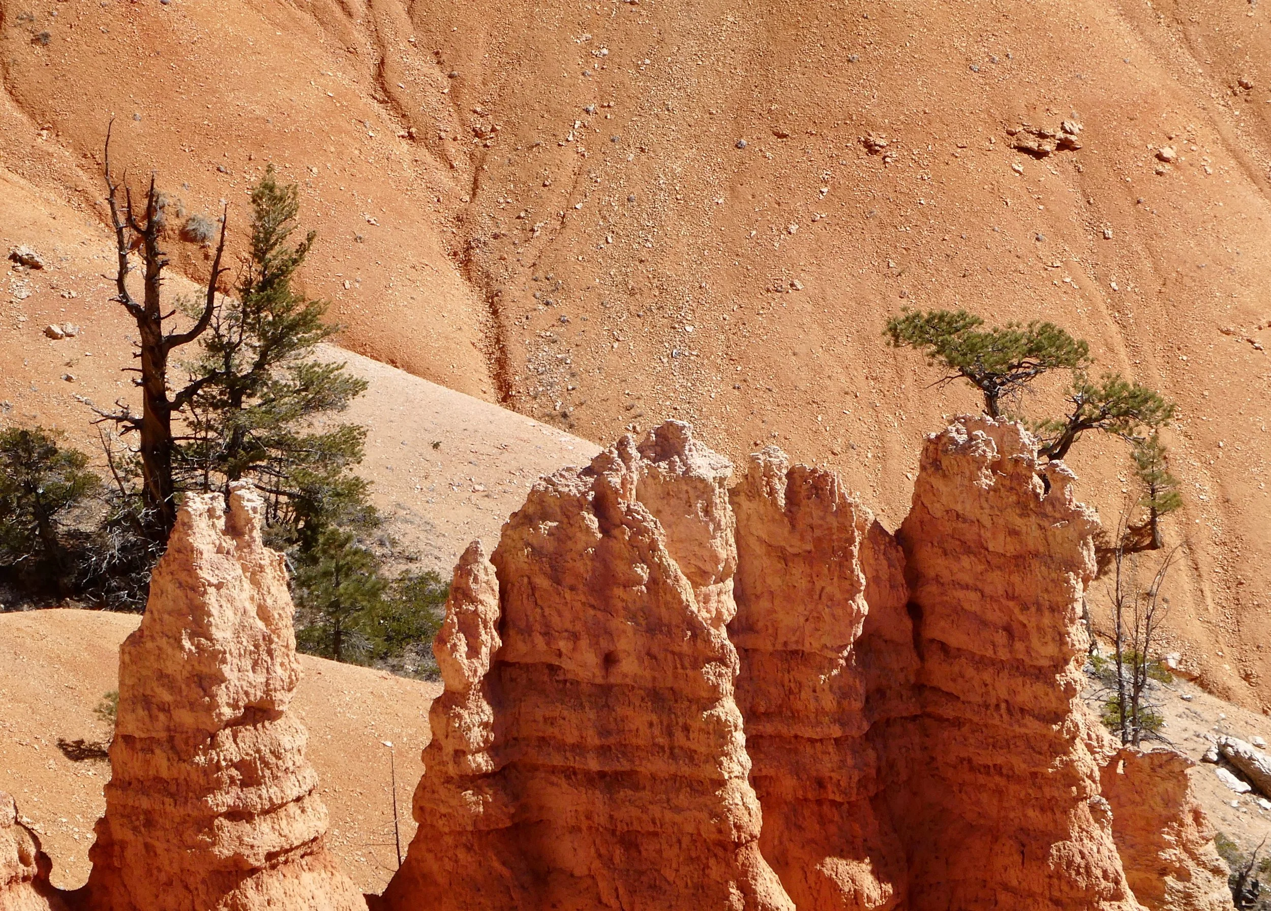 Hoodoos form through uplift, weathering and erosion - especially in freeze/thaw cycles. This has happened over the last several million years. Look carefully at the photos and you will see the cracks that are a result of the freeze/thaw phenomenon.