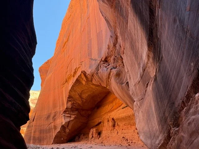 Buckskin Gulch is another example of what incredible geographic features can be explored in The Grand Staircase - area. This gulch is one of the longest and deepest slot canyons in the world. Slot canyons are formed by rapid rain water (flash floods) rushing through the sandstone walls caving natures hallway. This is no average hallway but one of incredible mystic and beauty.
