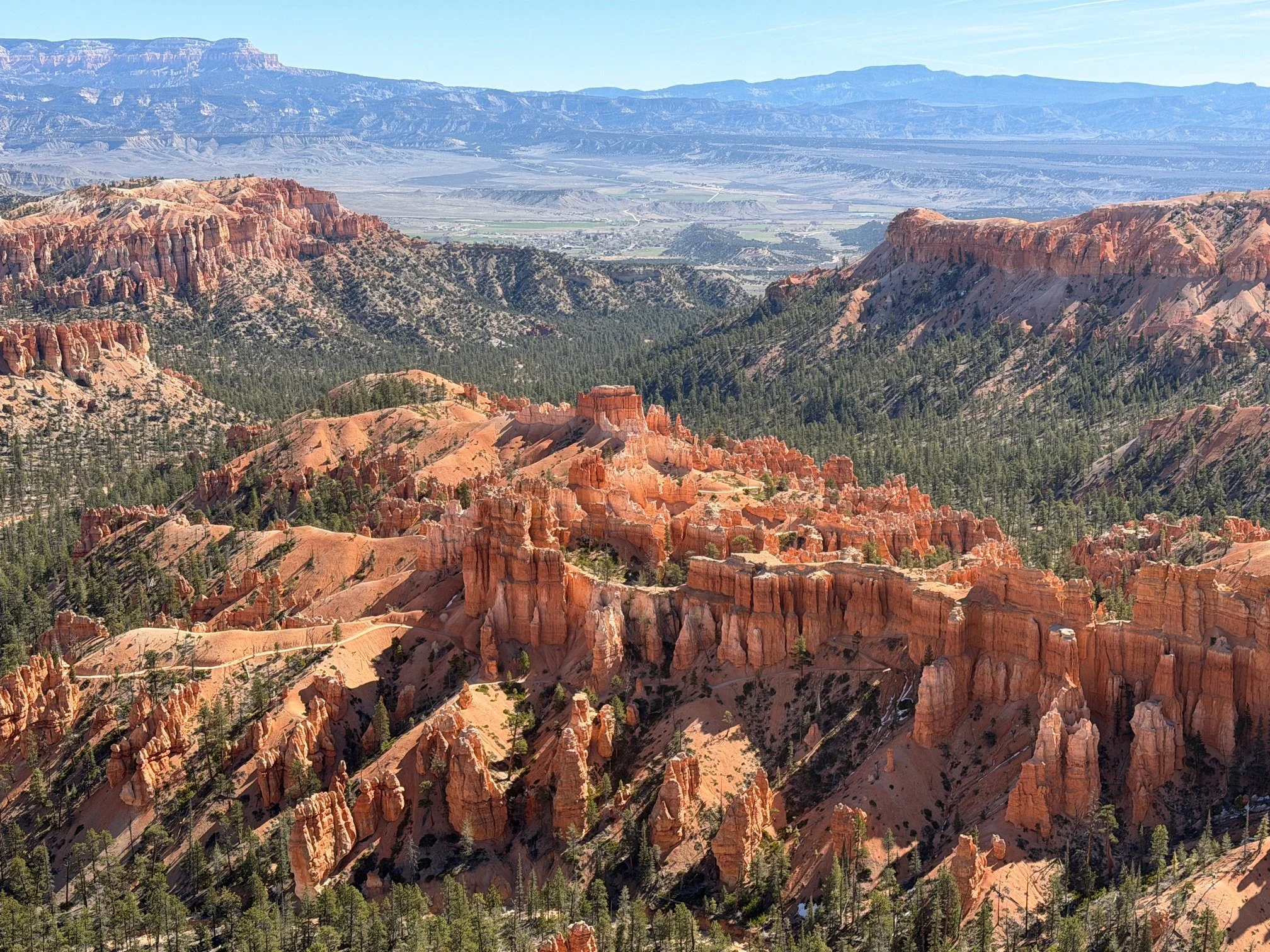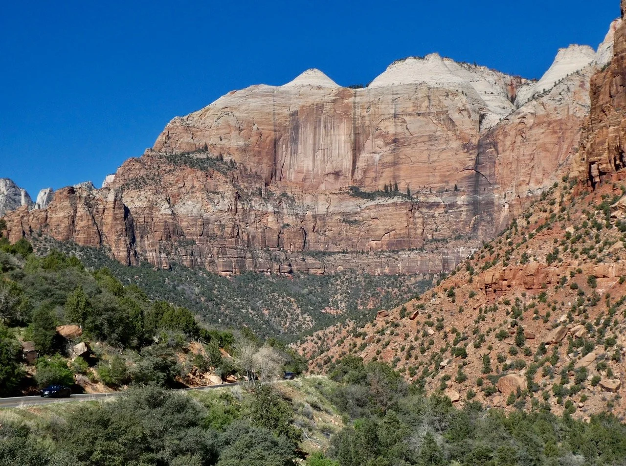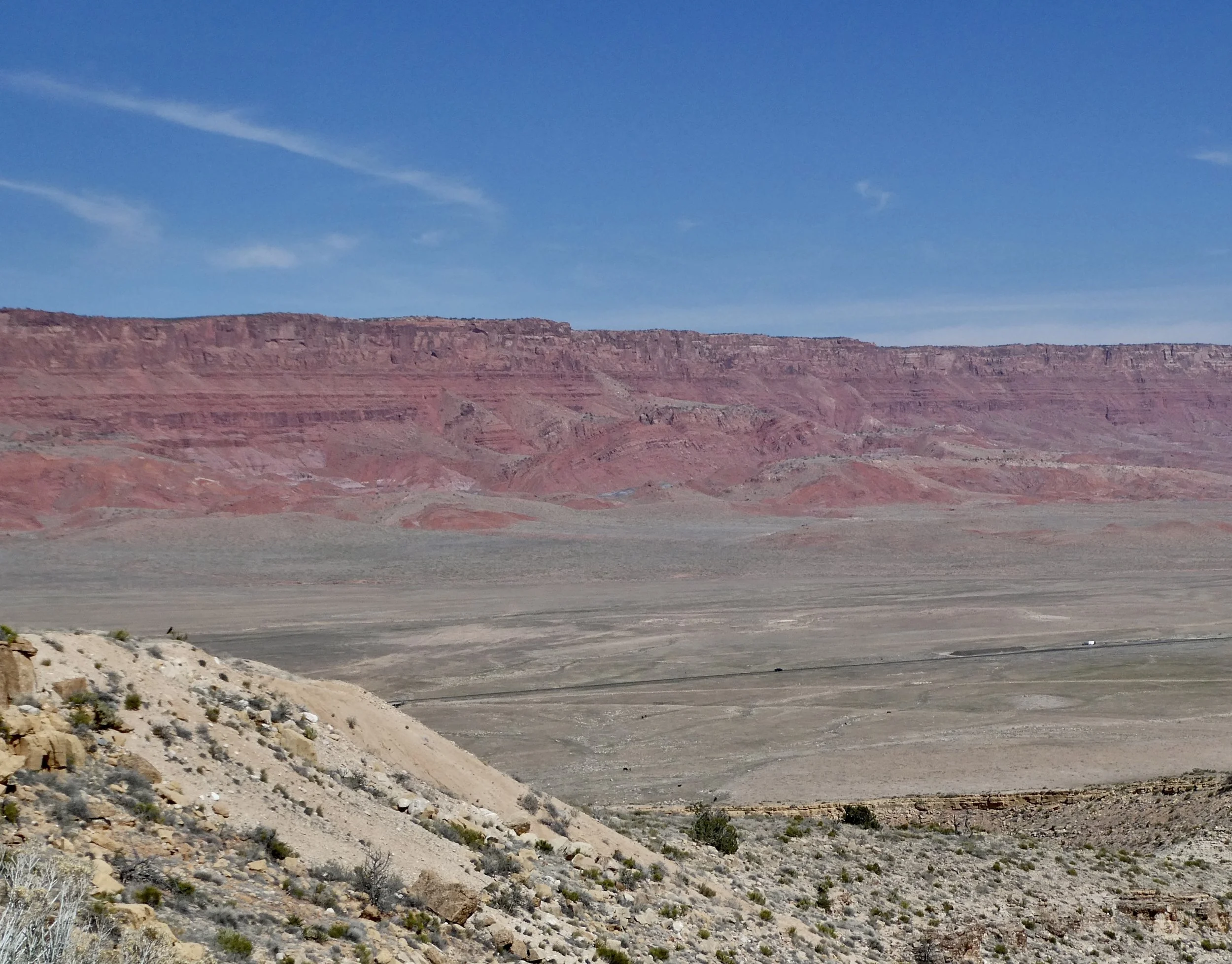 Looking across one of Utah’s arid plains, you see the distinct outline of The Grand Staircase. It is 150 miles (240kms) long and 15 miles (25kms) wide. Within this boundary you will find the Grand Canyon, Zion and Bryce Canyon National Parks plus many/many other incredible geographic features.